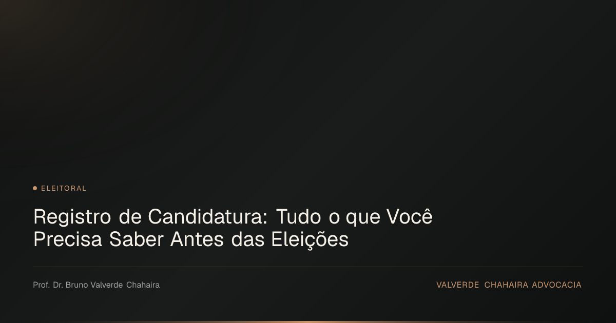 O registro de candidatura exige planejamento antecipado e assessoria jurídica especializada. A verificação prévia das condições de elegibilidade e das possíveis causas de inelegibilidade, realizada com antecedência suficiente para eventual saneamento de irregularidades, é a melhor estratégia para garantir uma candidatura juridicamente segura. O escritório Valverde Chahaira, com integrante da Comissão Nacional de Direito Eleitoral da OAB, oferece assessoria completa em todas as fases do processo eleitoral.